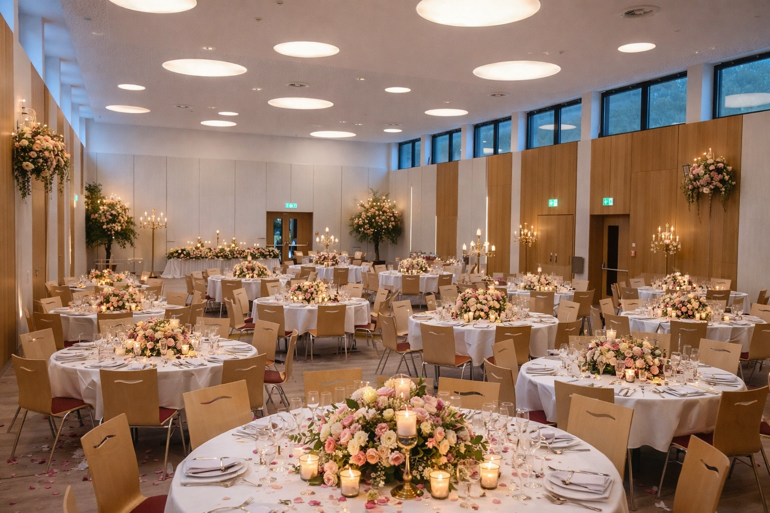 Als zentraler Veranstaltungsort der Stadt Widdern verbindet die Halle Funktionalität mit Atmosphäre und bietet eine verlässliche Grundlage für eine gelungene Hochzeitsfeier.